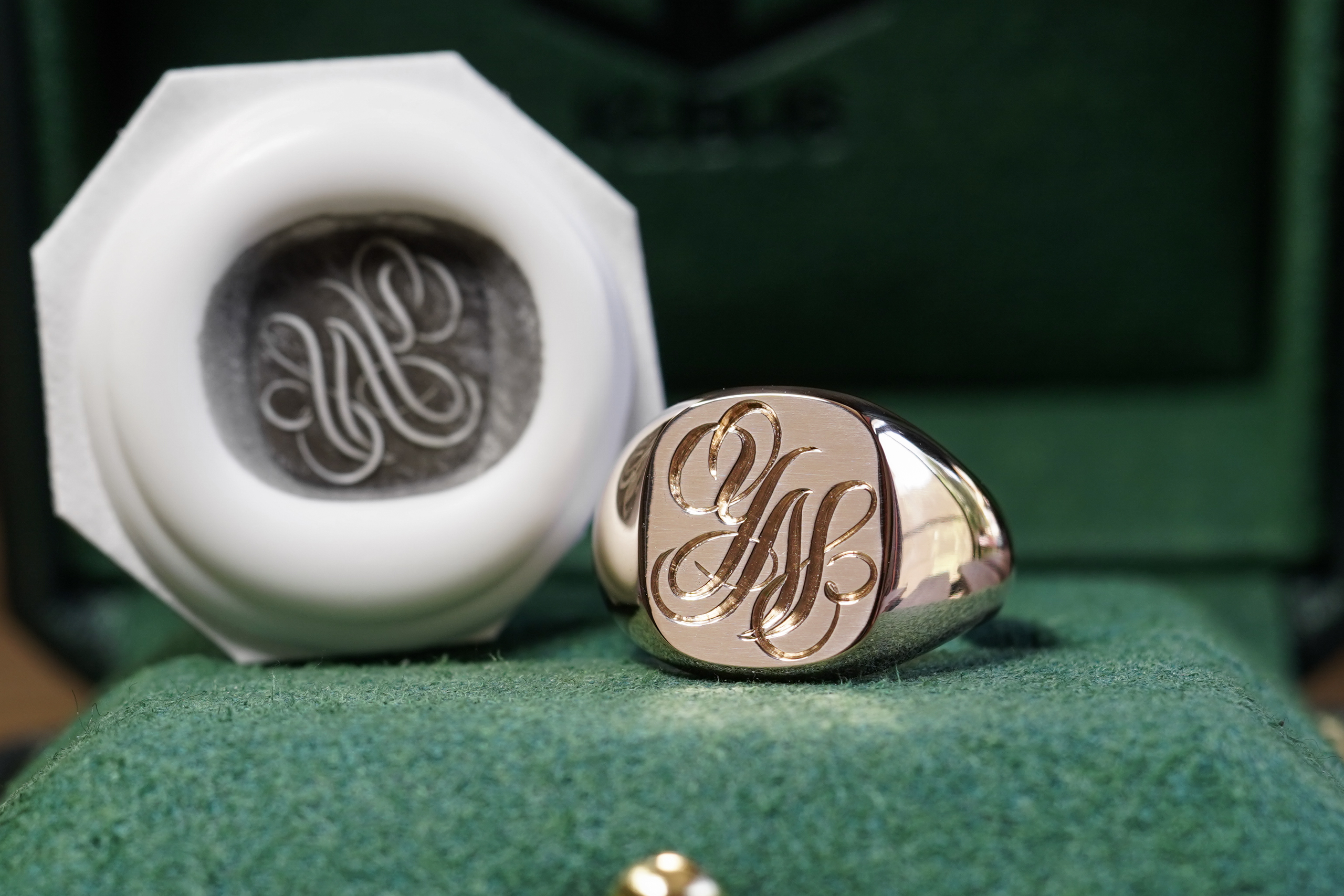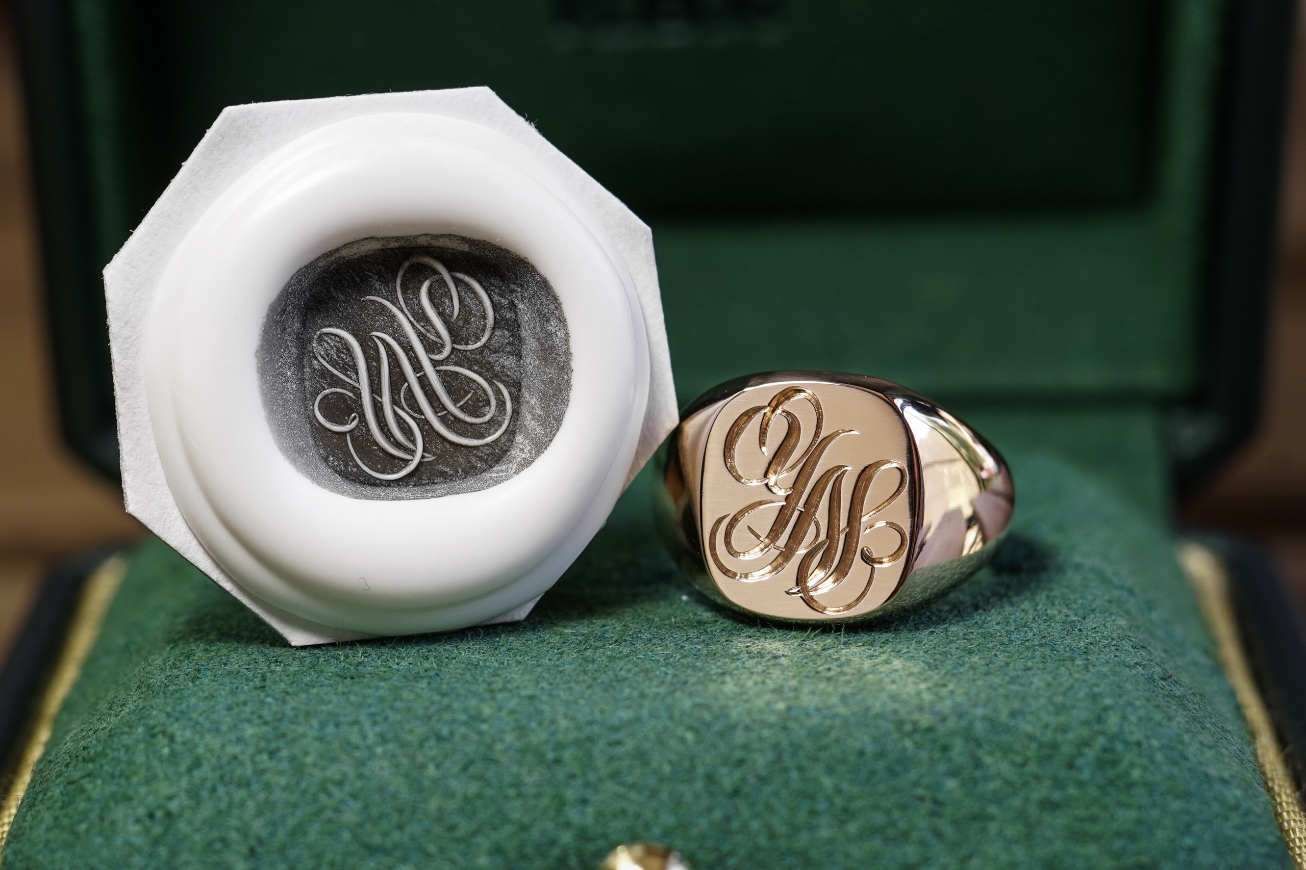 Hand Engraved Cushion Signet Ring(K18PG) 「YN」_10