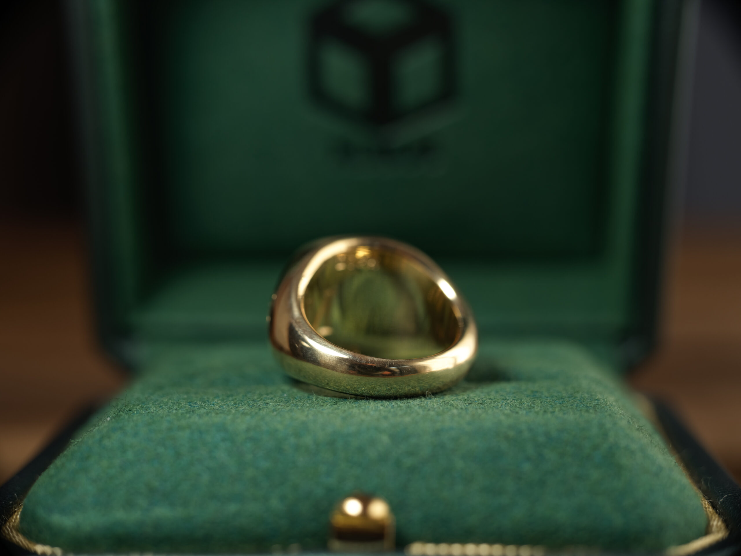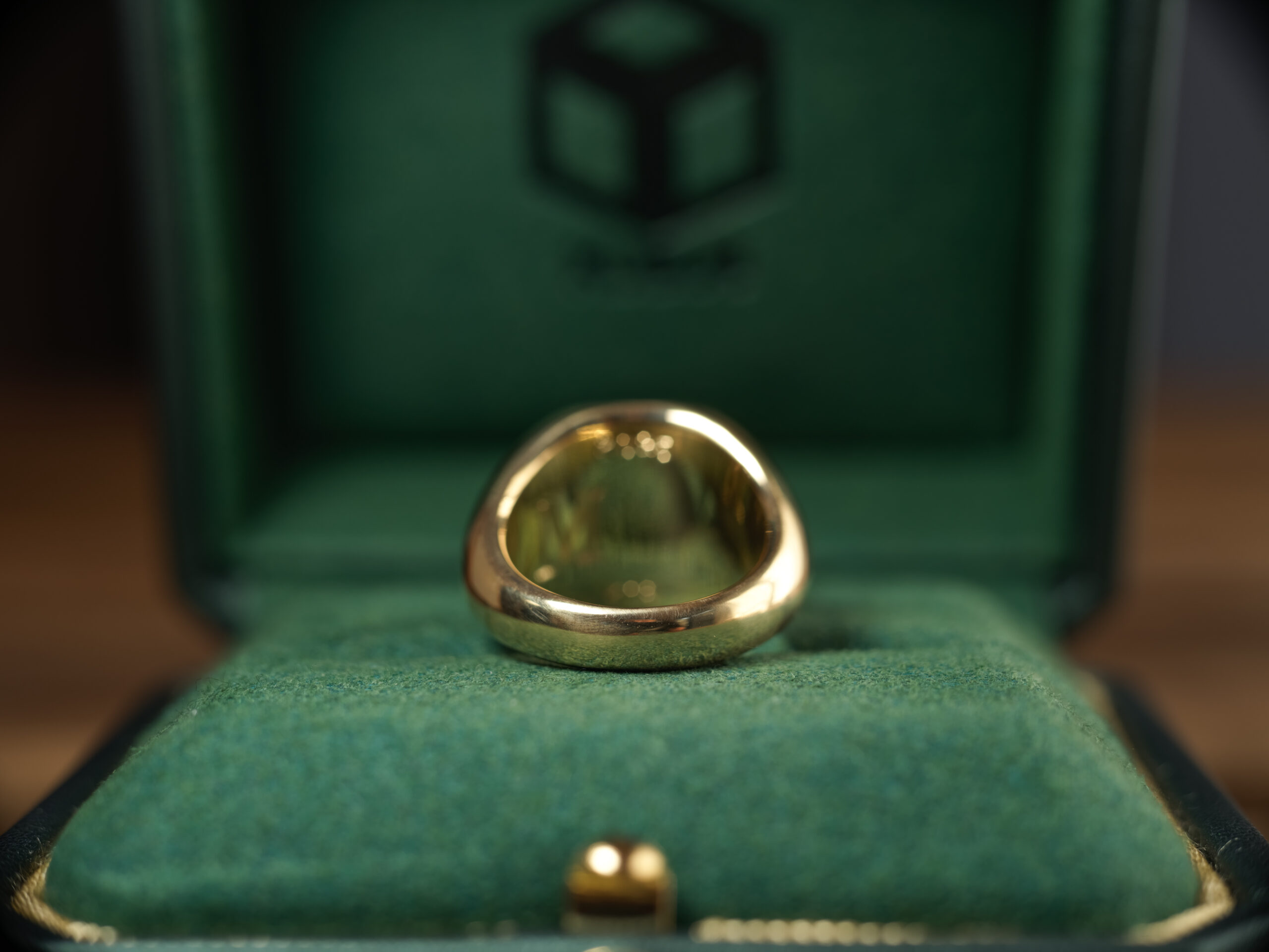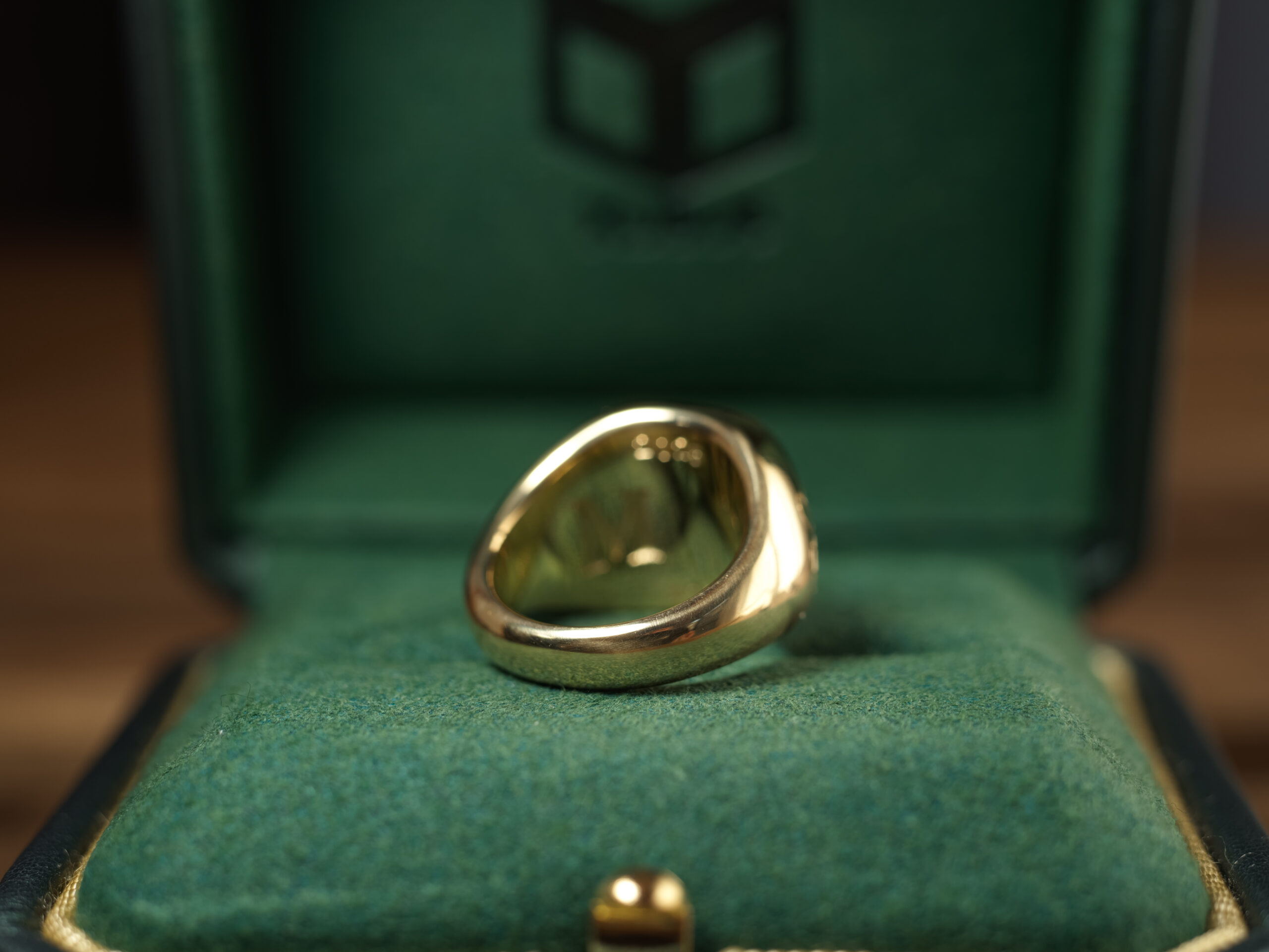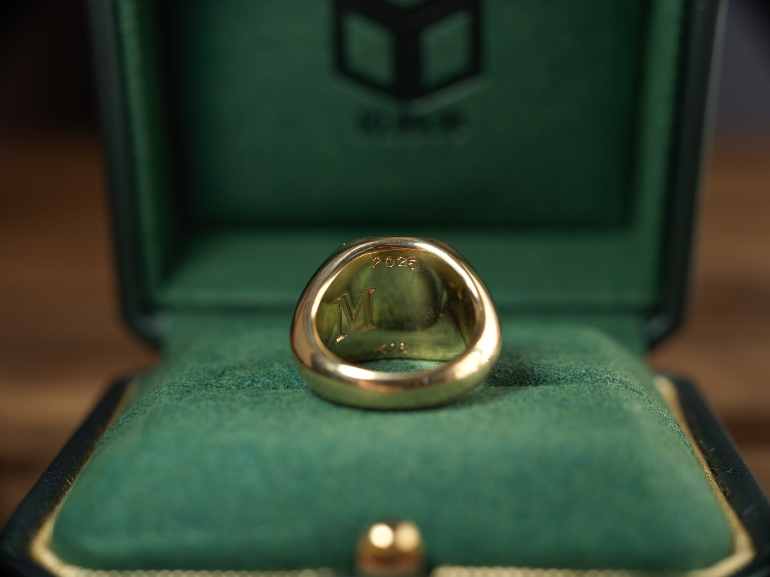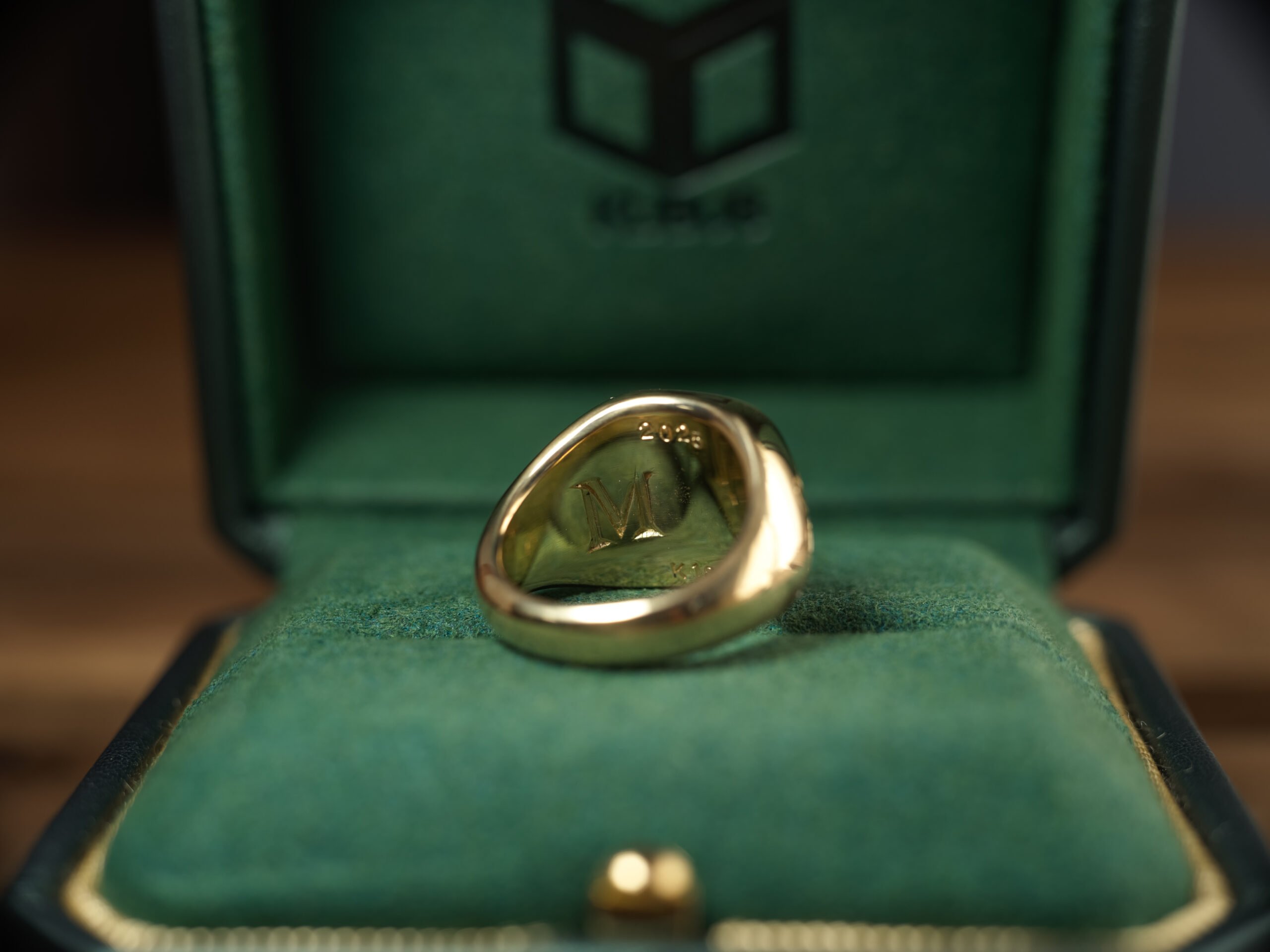 Hand Engraved Mellow Square Signet Ring(K18YG)「木村」+「KHJ・KM(側面彫刻)」+「M(裏面彫刻)」