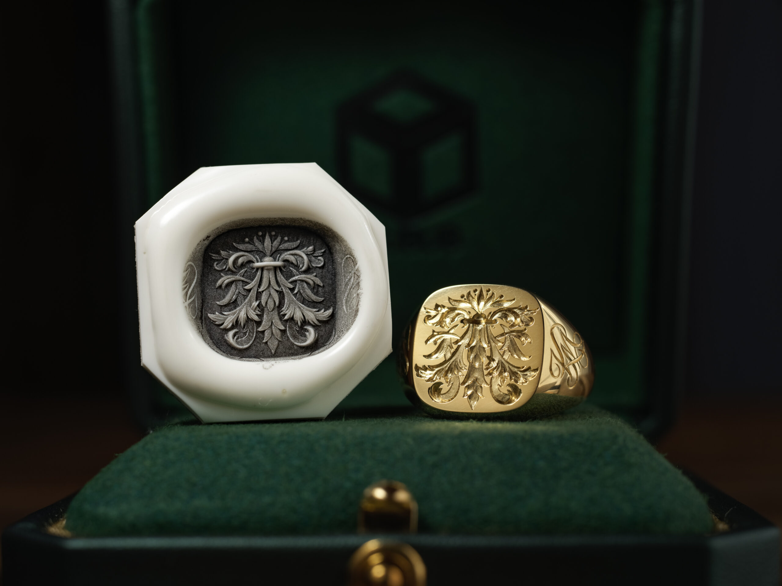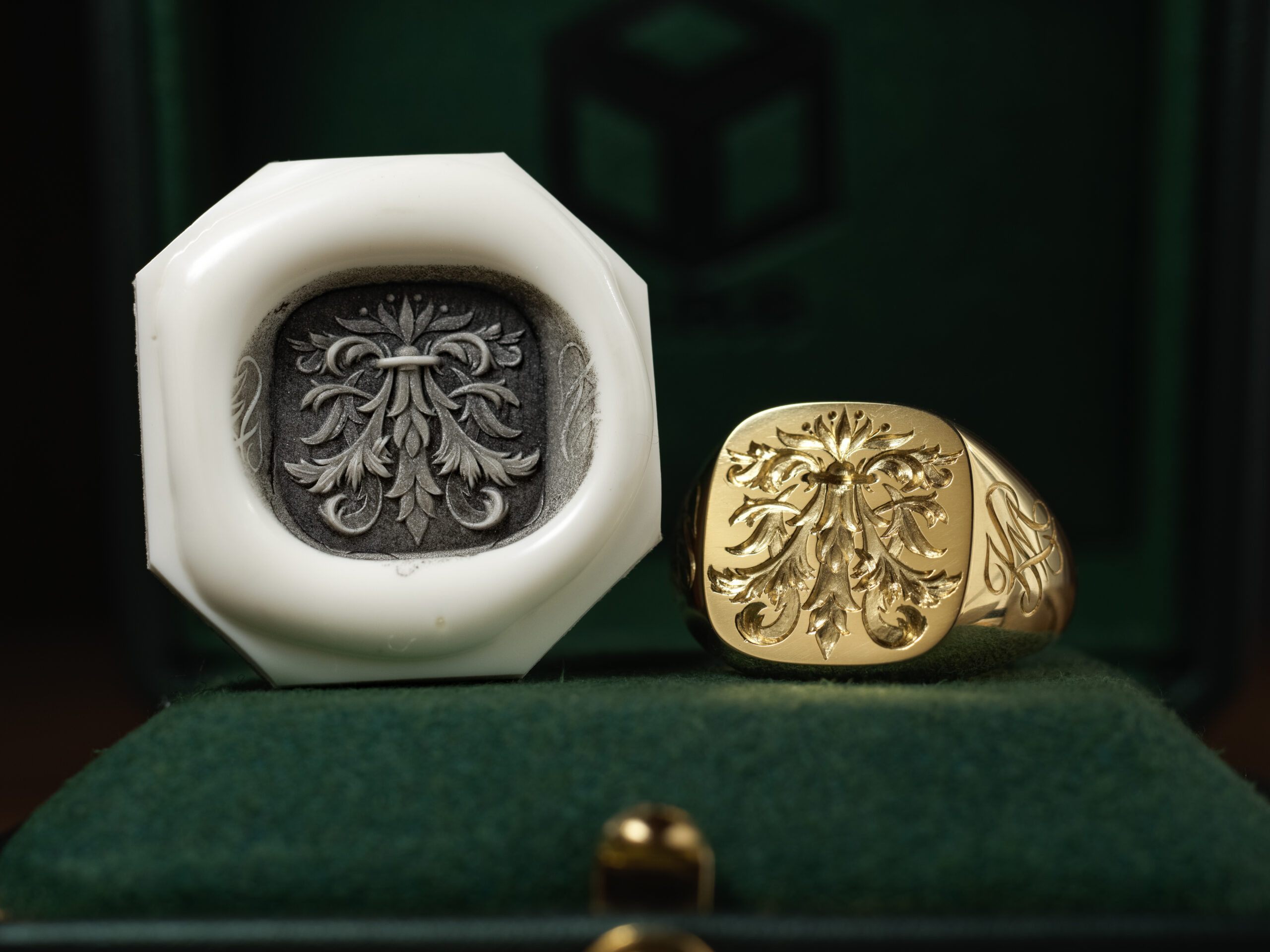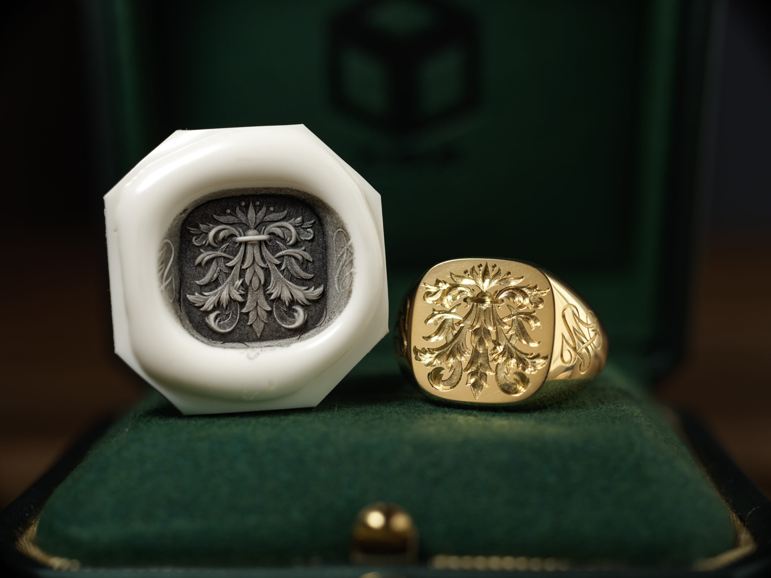 Hand Engraved Mellow Square Signet Ring(K18YG)「木村」+「KHJ・KM(側面彫刻)」+「M(裏面彫刻)」_21