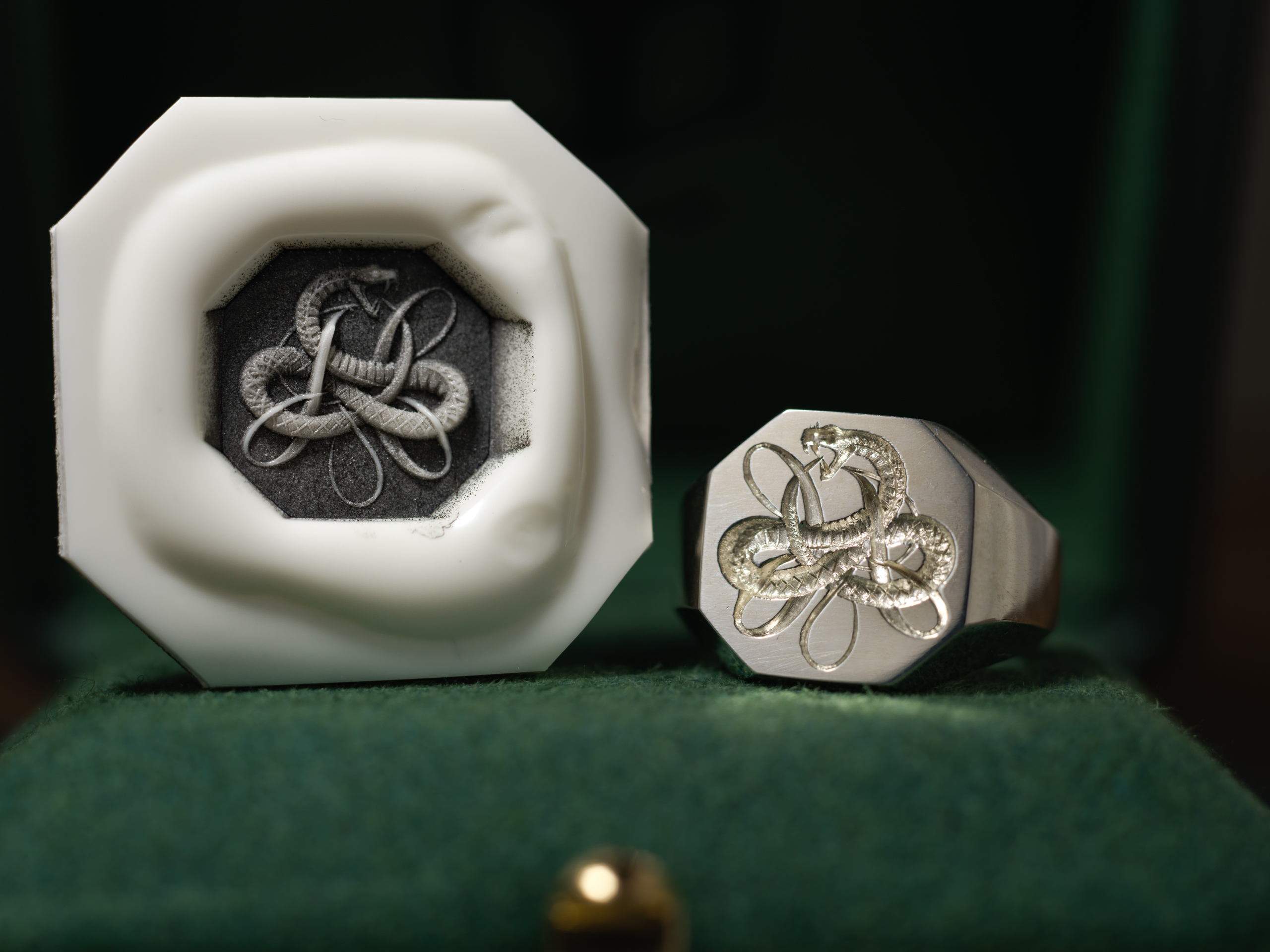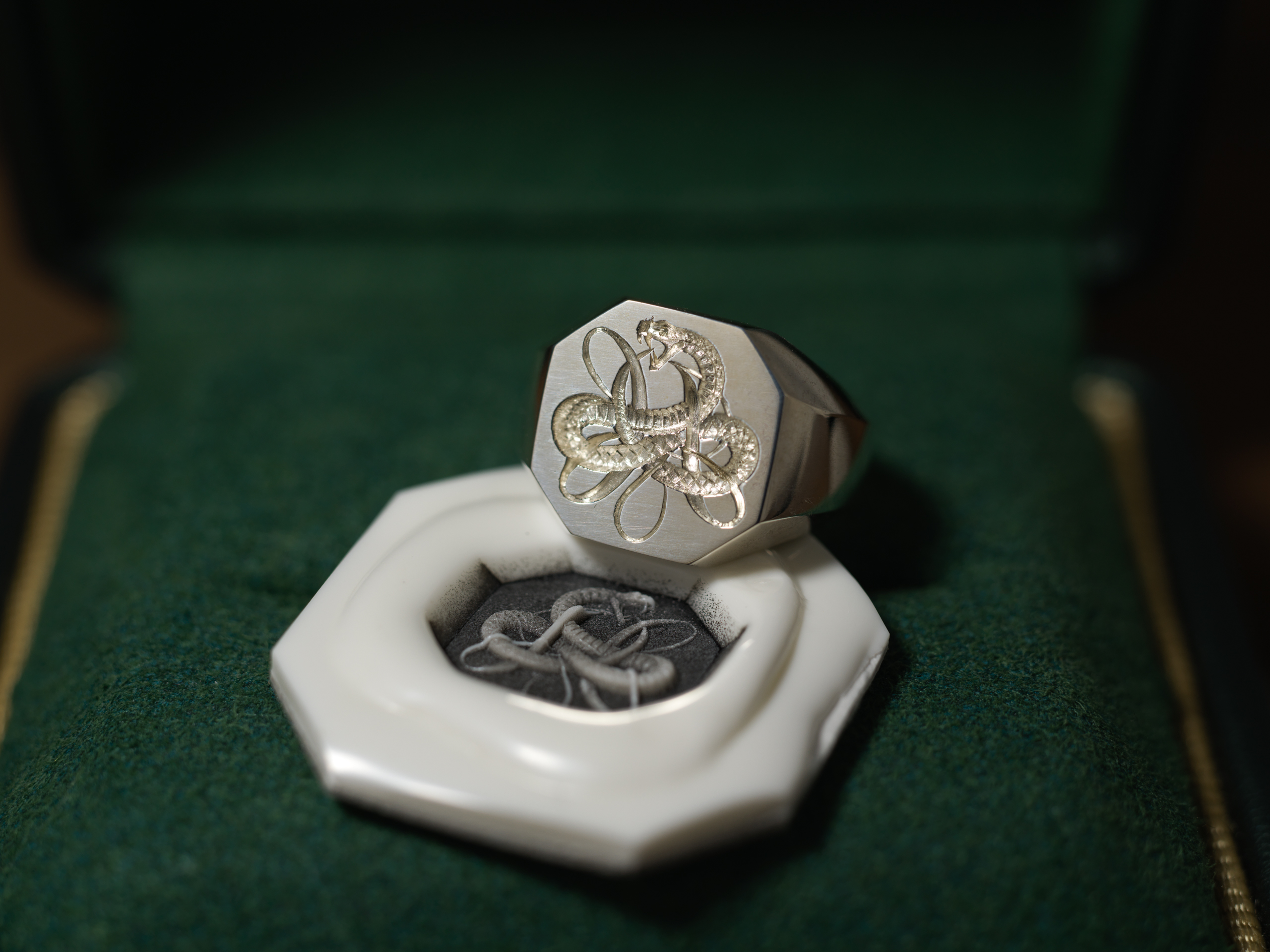 Hand Engraved Octagon Signet Ring(Silver925)「H+蛇(ウロボロス)」_4