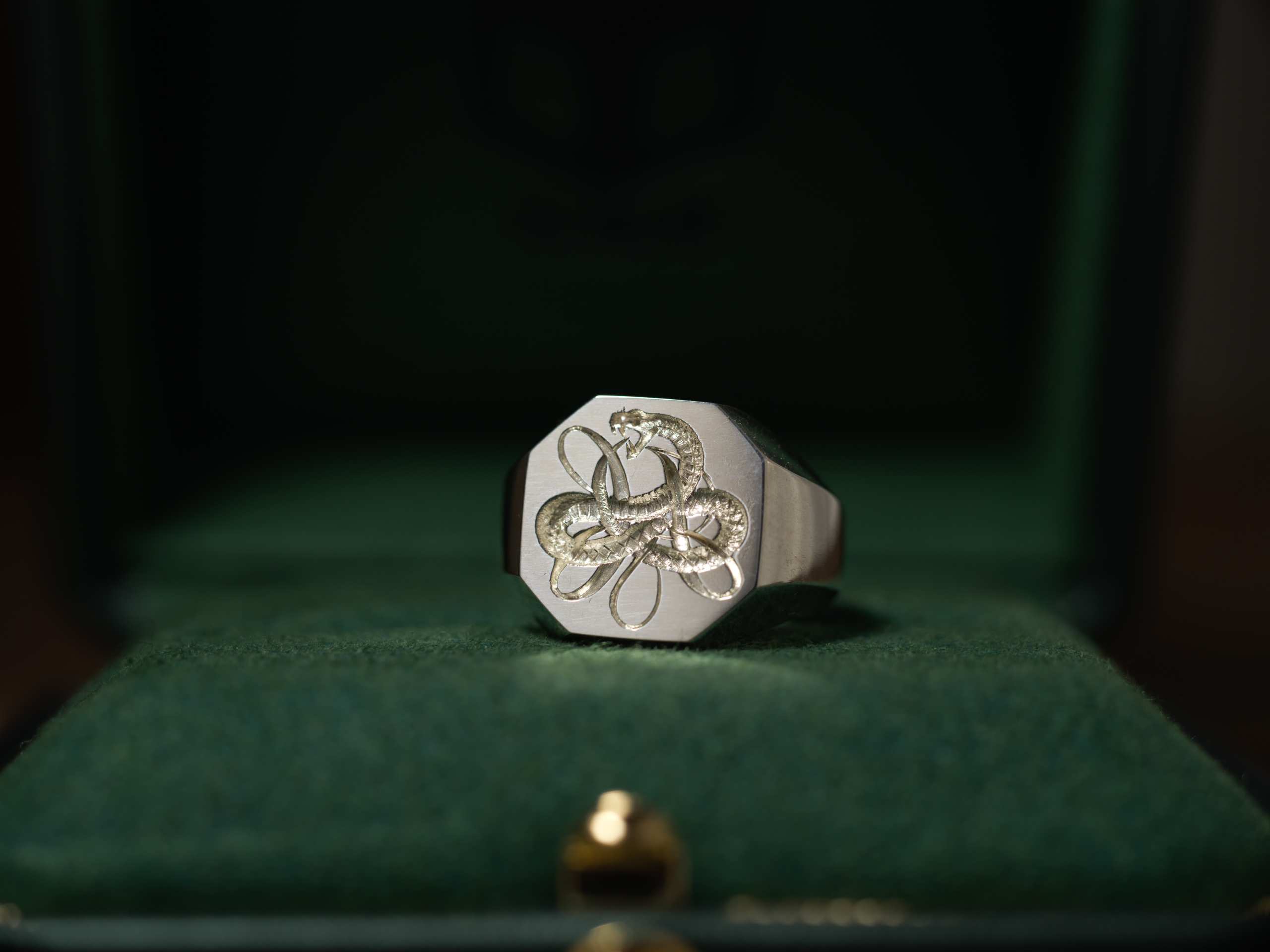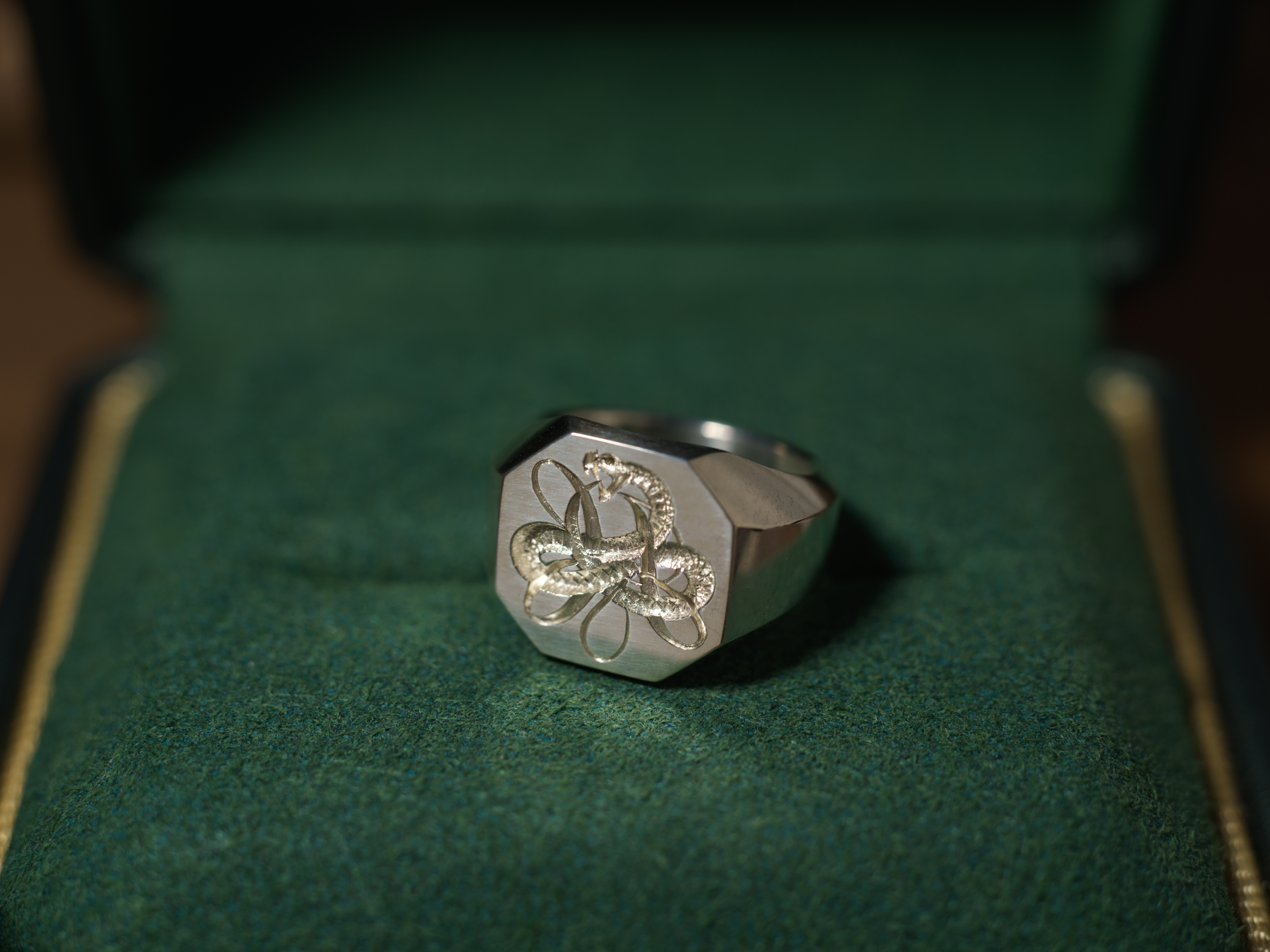 Hand Engraved Octagon Signet Ring(Silver925)「H+蛇(ウロボロス)」