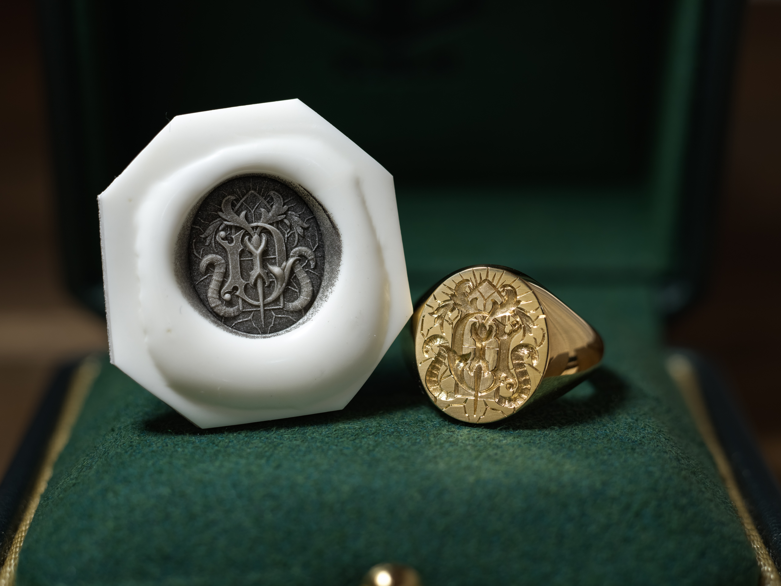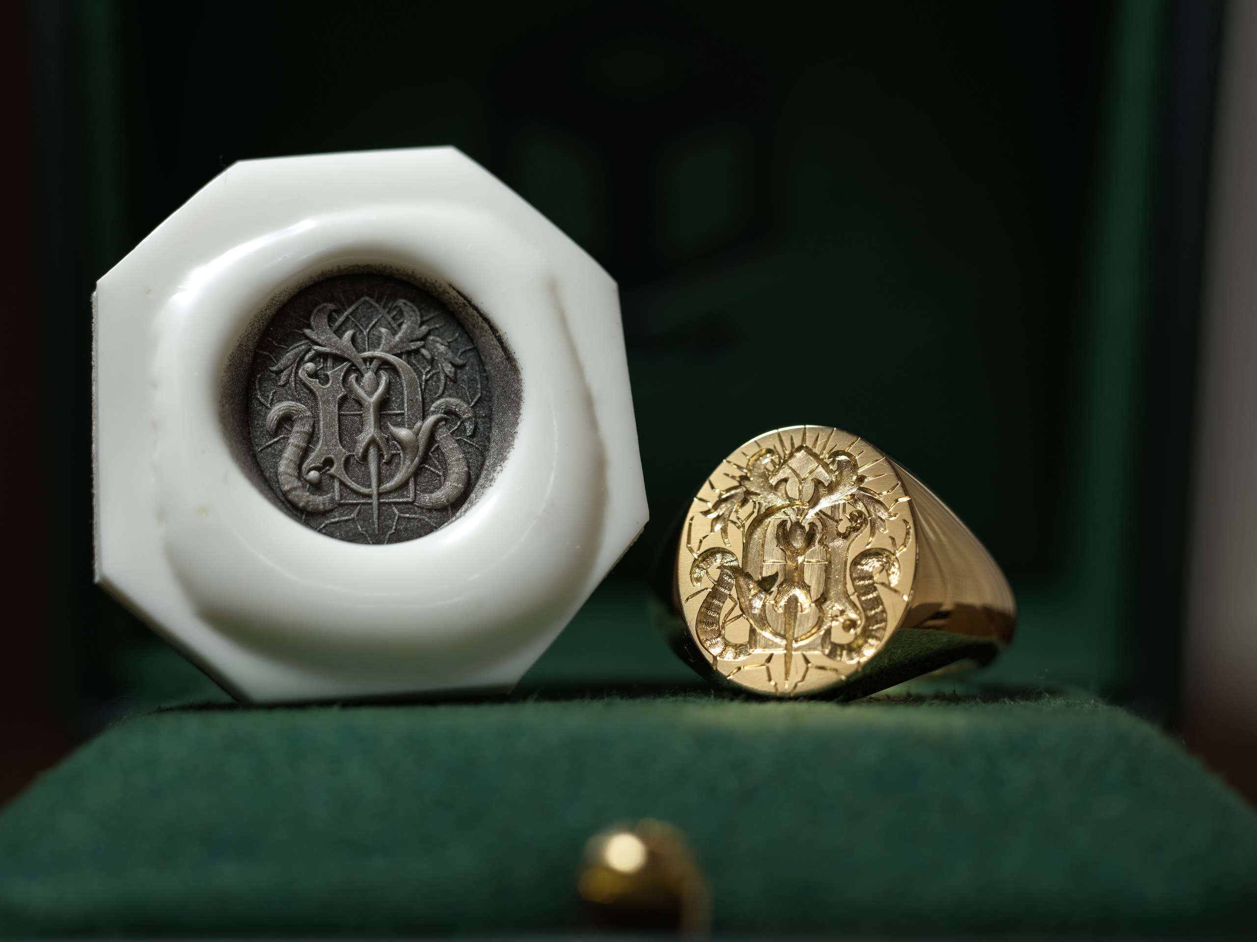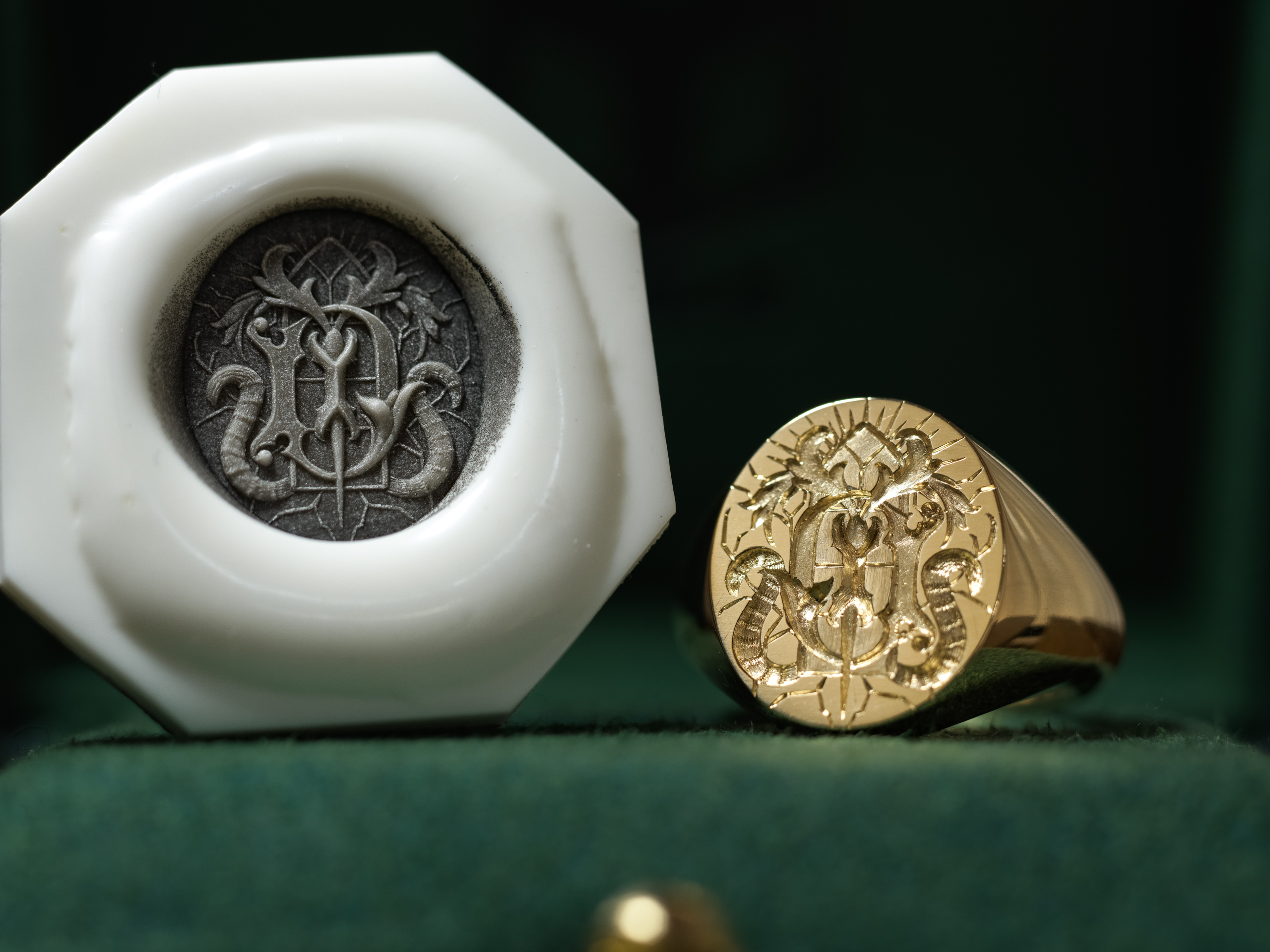 Hand Engraved Oval Signet Ring(K18YG)「YD+扉+光+猫の尻尾+稲妻や割れ目のような模様」_15