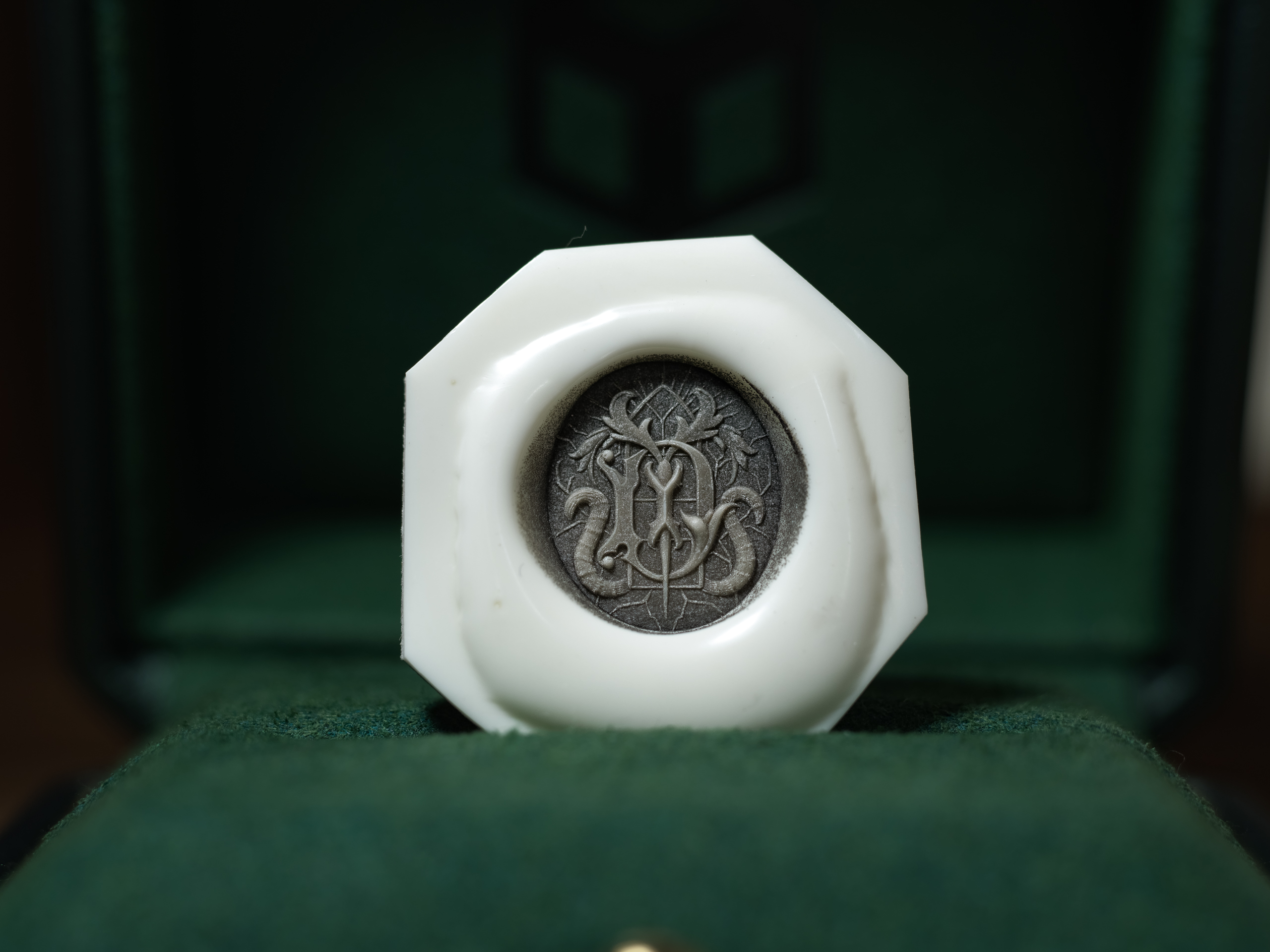 Hand Engraved Oval Signet Ring(K18YG)「YD+扉+光+猫の尻尾+稲妻や割れ目のような模様」_10