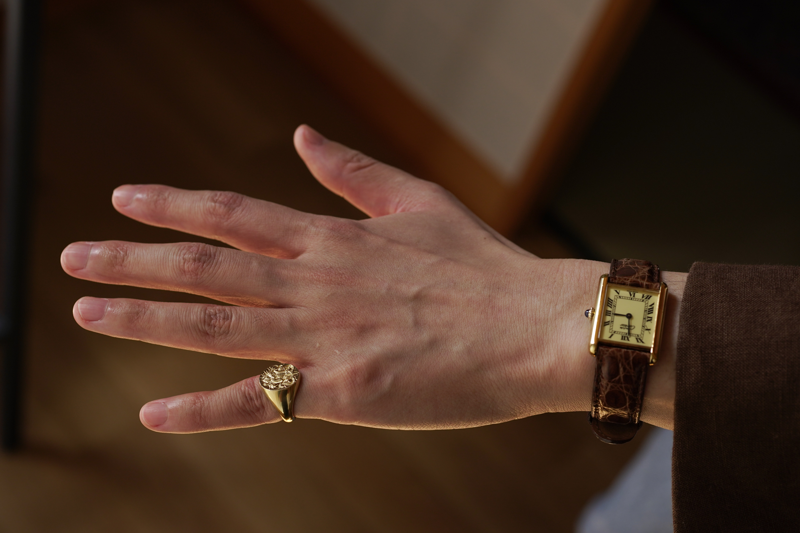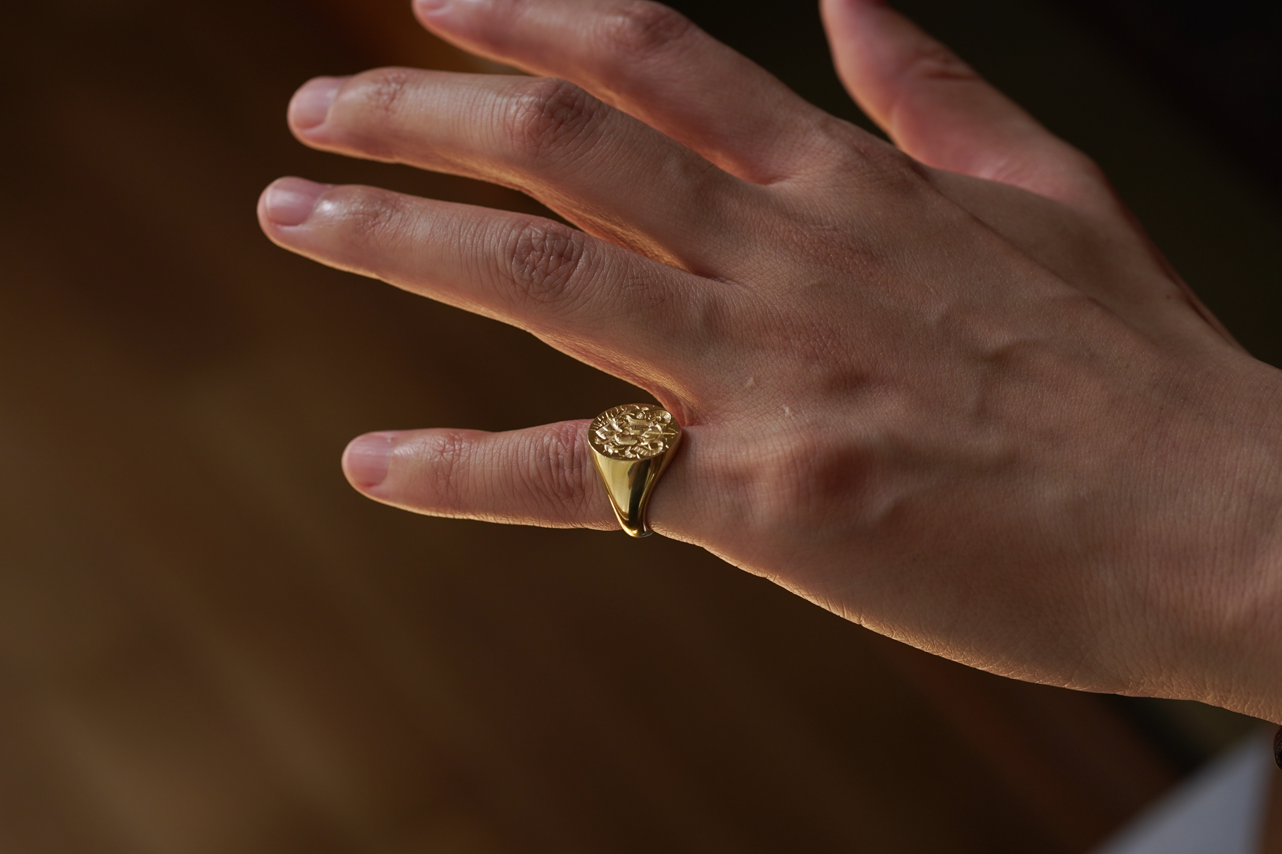 Hand Engraved Oval Signet Ring(K18YG)「YD+扉+光+猫の尻尾+稲妻や割れ目のような模様」_9